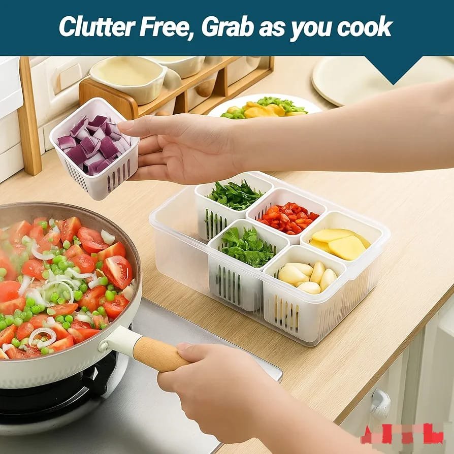 *6 gride Small Fridge Storage Boxes fridge storage containers Kitchen Accessories Items cut Vegetable Storage Box for Fridge also ideal freezer storage containers