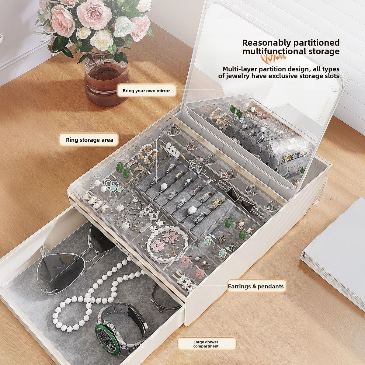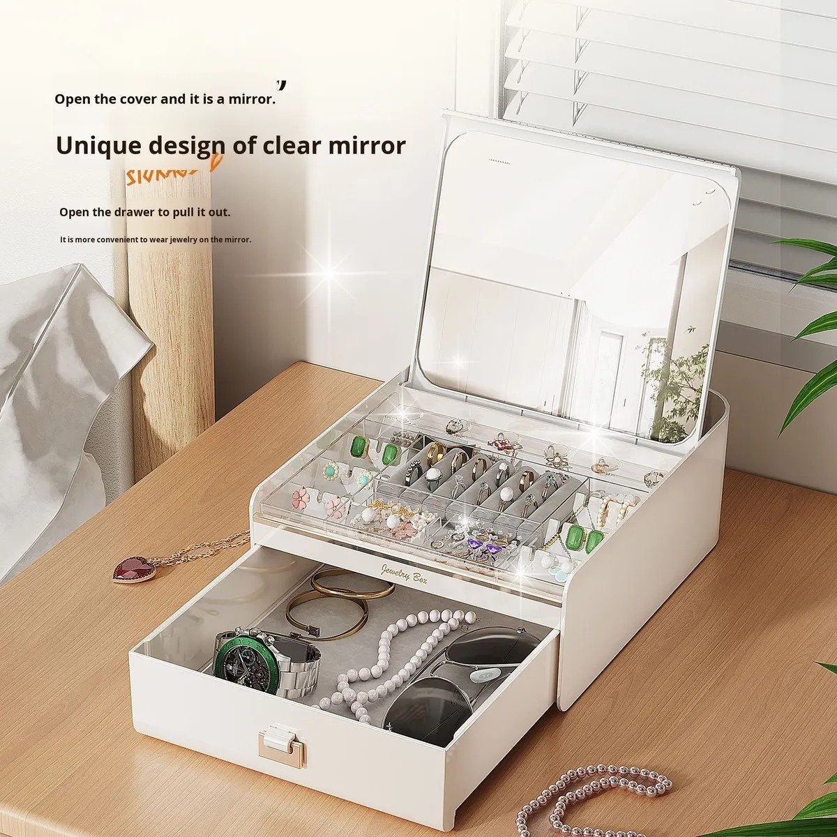 large jewelry organizer with mirror, multi-function storage box with lock, accessory holder with 5 drawers, for earrings necklace ring