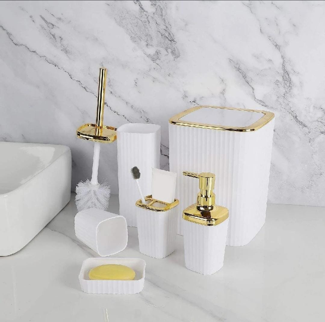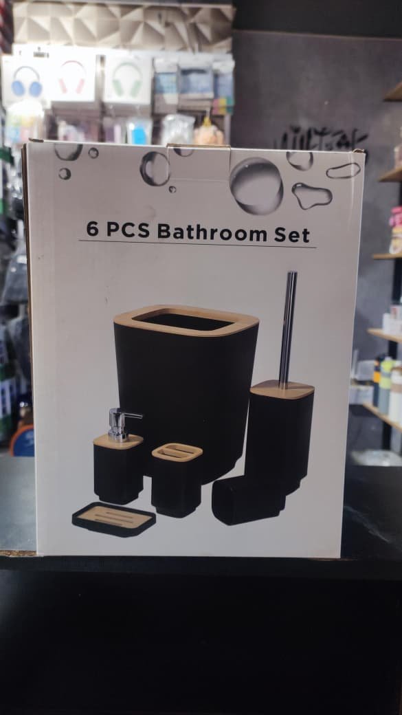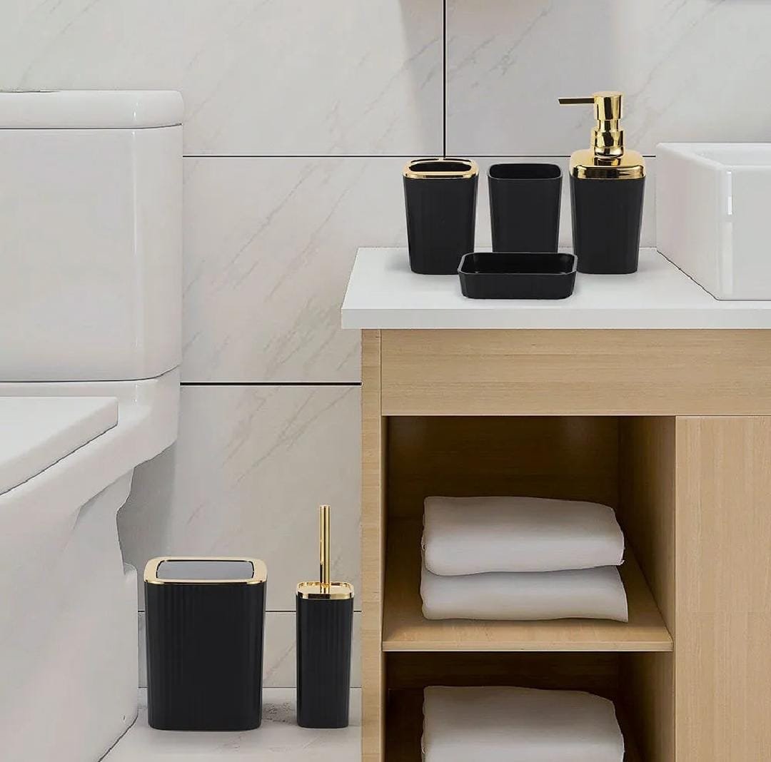 6 Piece Bathroom Accessories Set Premium Black Plastic Set With Soap Dispenser, Toothbrush Holder Soap Dish, Toilet Brush & Trash Bin Elegant Bathroom Organizer Set Modern Bathroom Set for