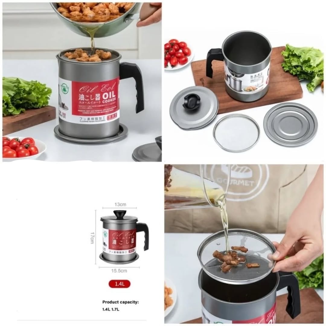 Oil Filter Pot Oil Strainer Pot Stainless Steel Grease Strainer Oil Storage Pot 1.4L